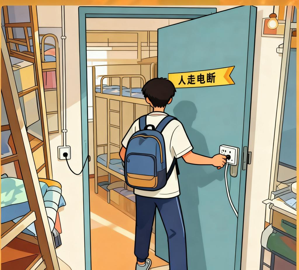 离开宿舍前,务必关闭所有电器电源,拔掉充电器及插线板;电子设备充满后及时断电,避免整夜充电;小型电器充电时应有人看管,避免长时间无人照看。
